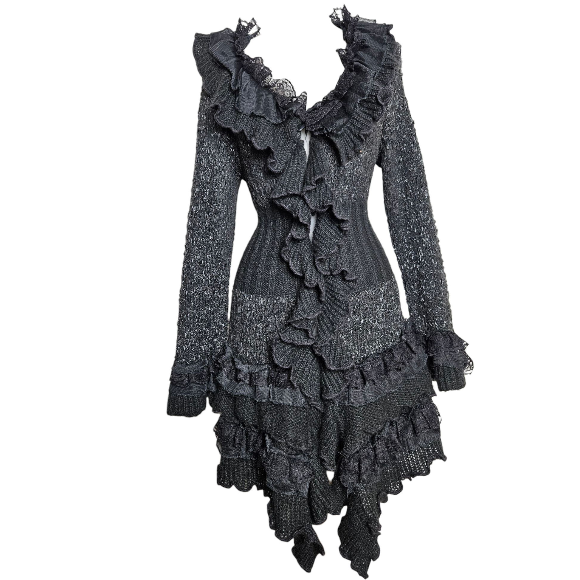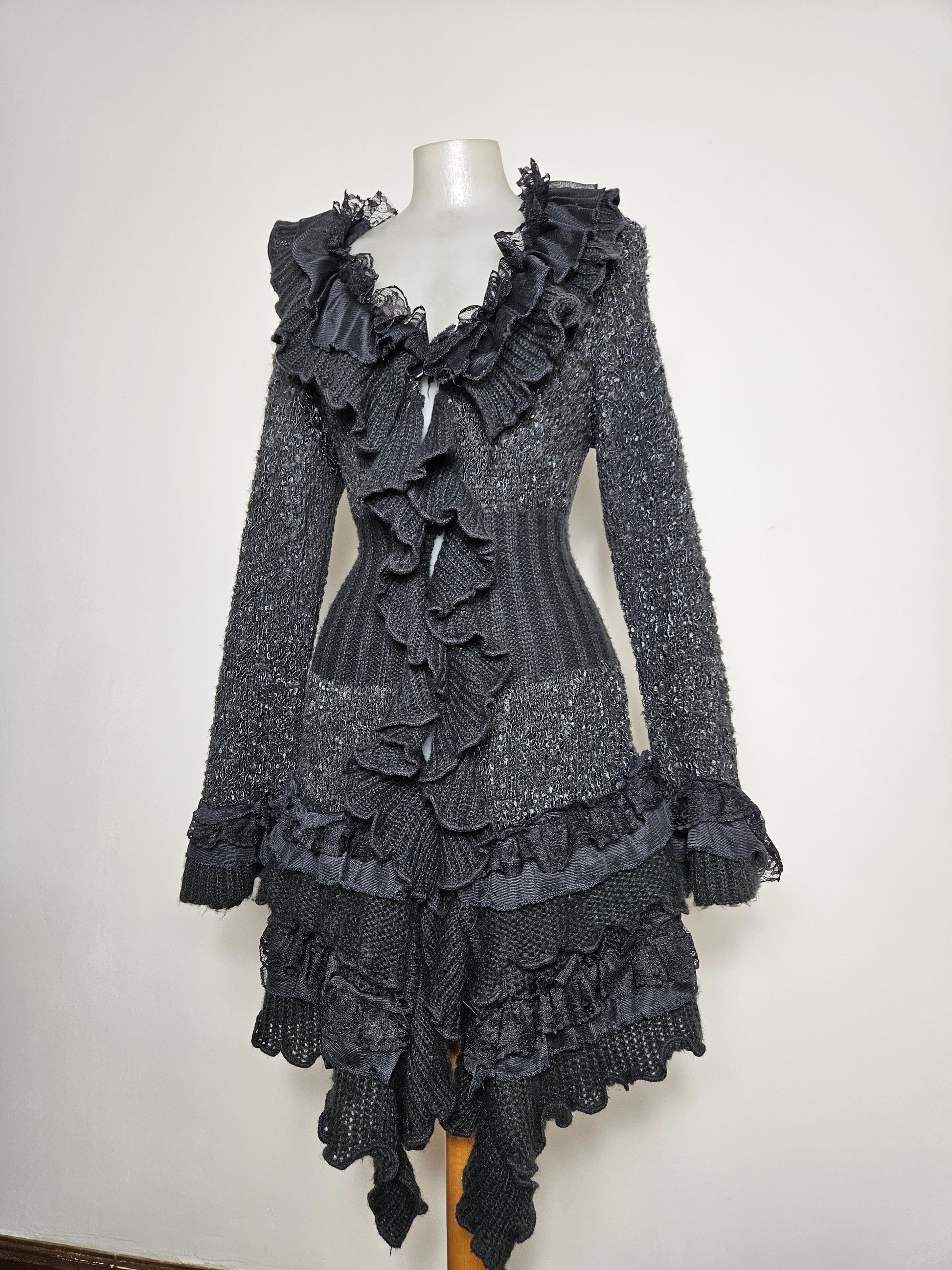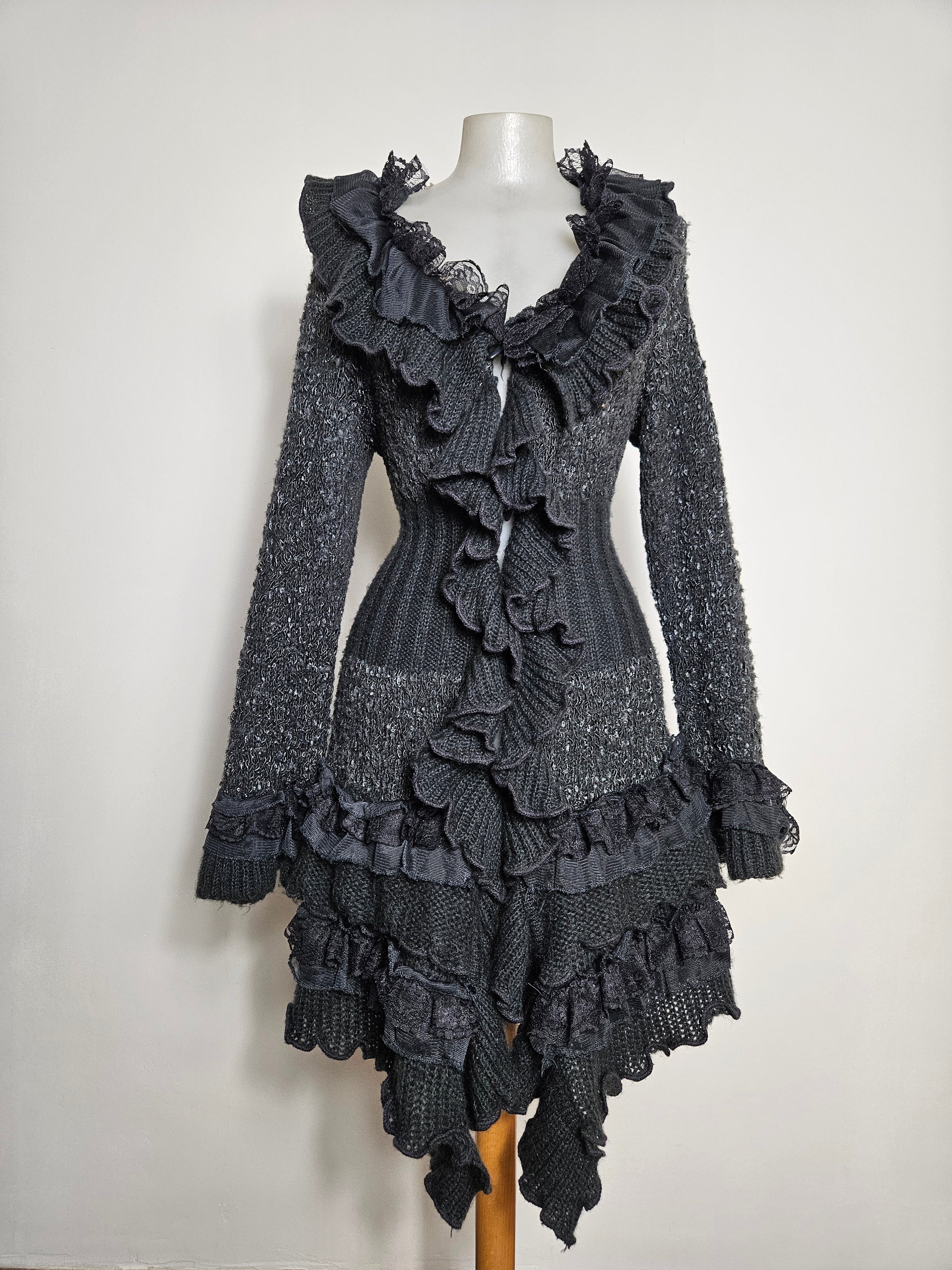 - Volants tricotés et détails de dentelle sur le col et les poignets
