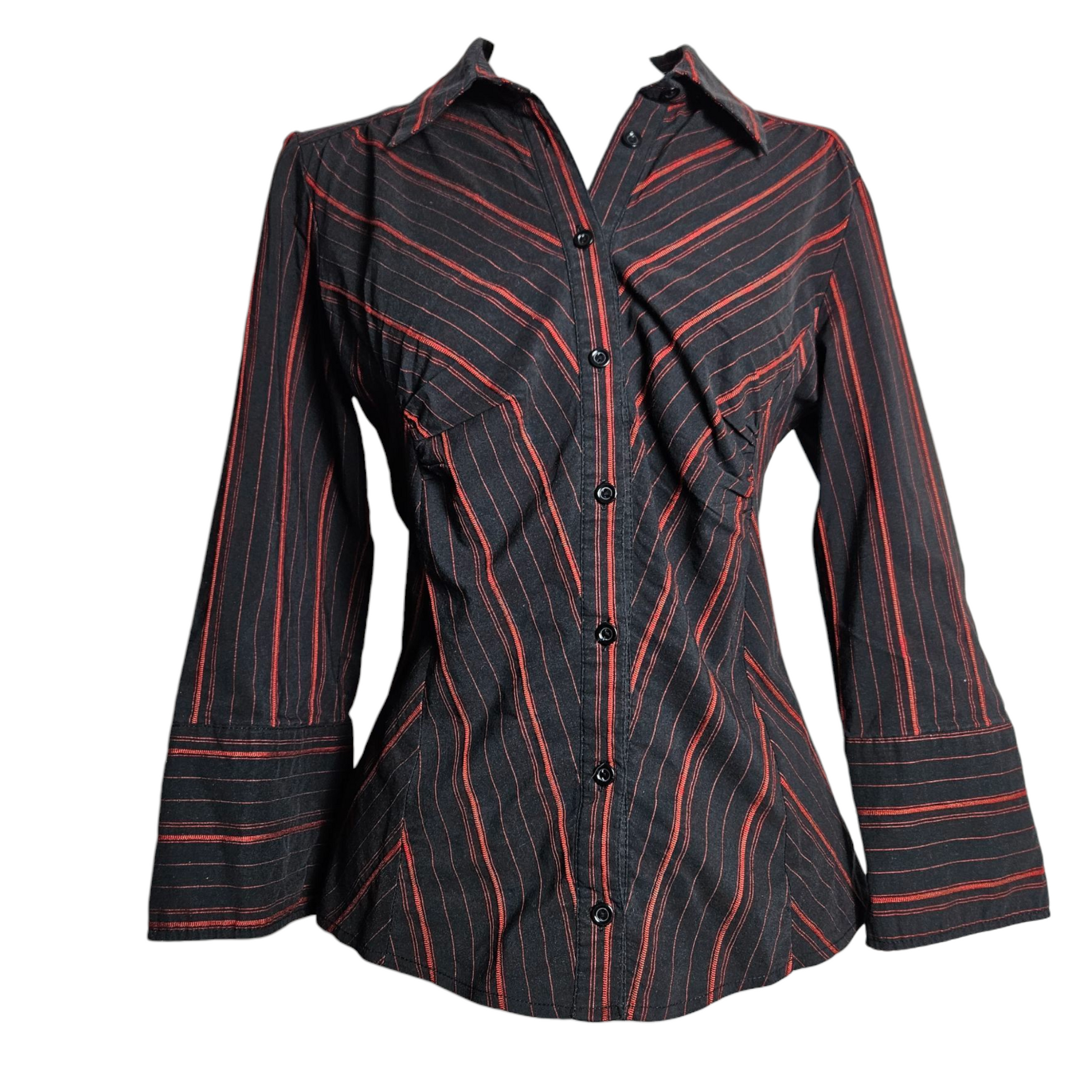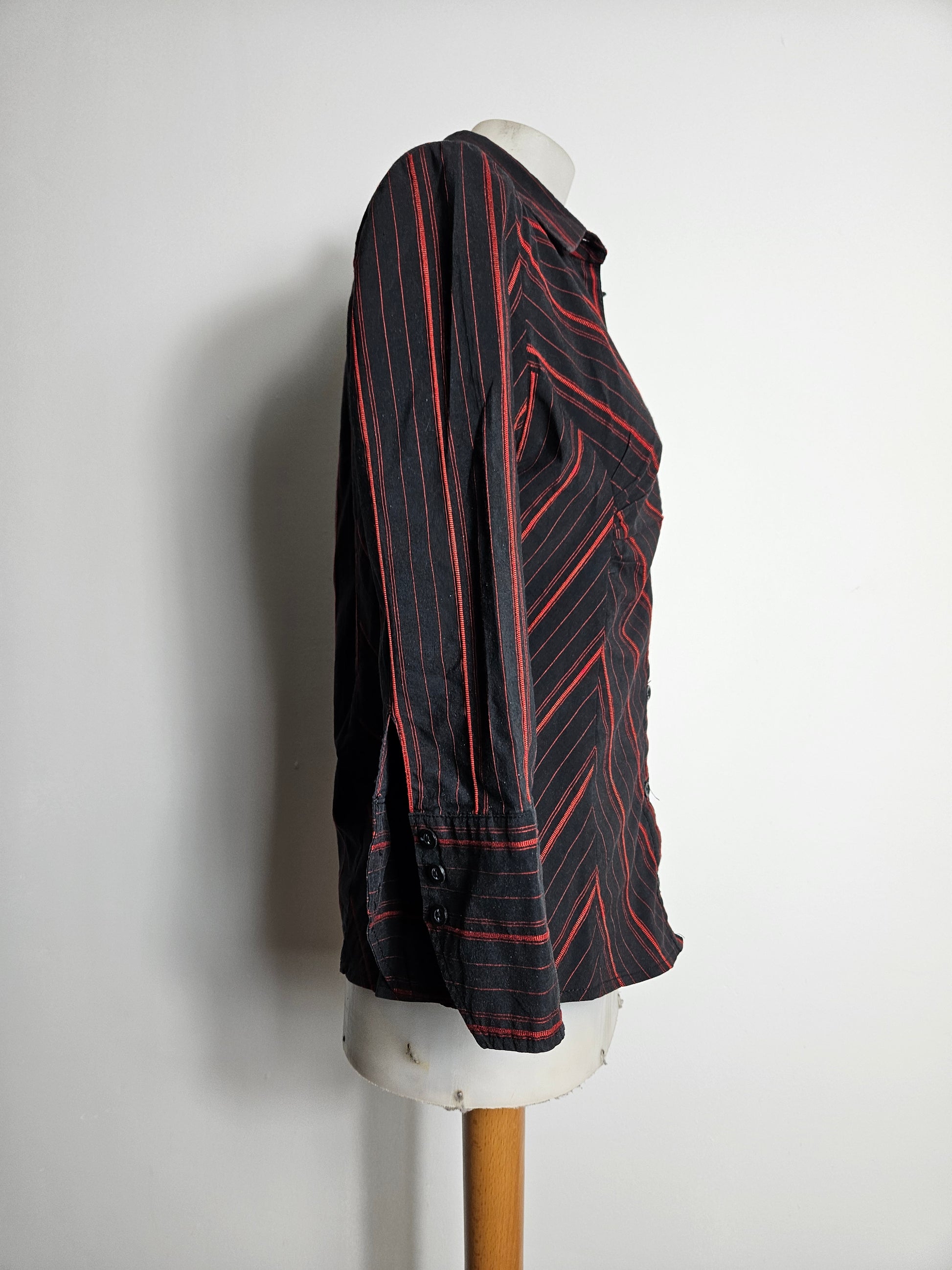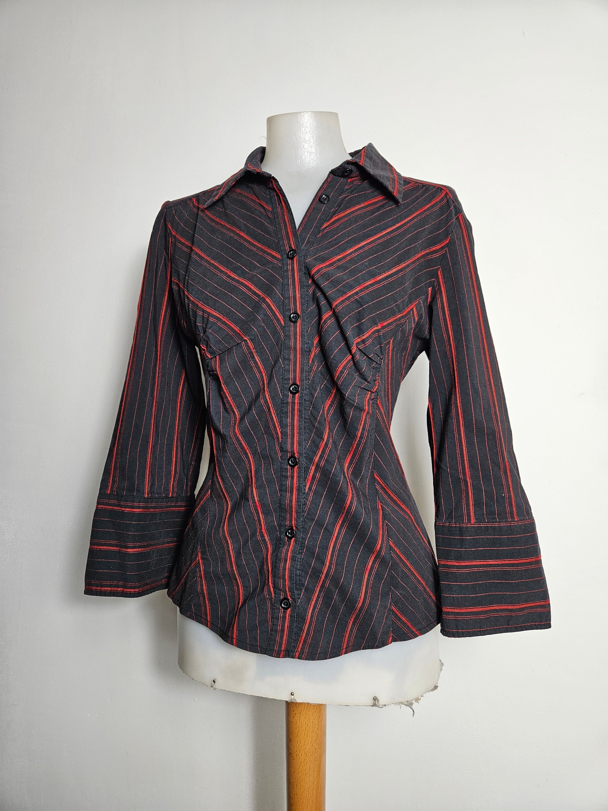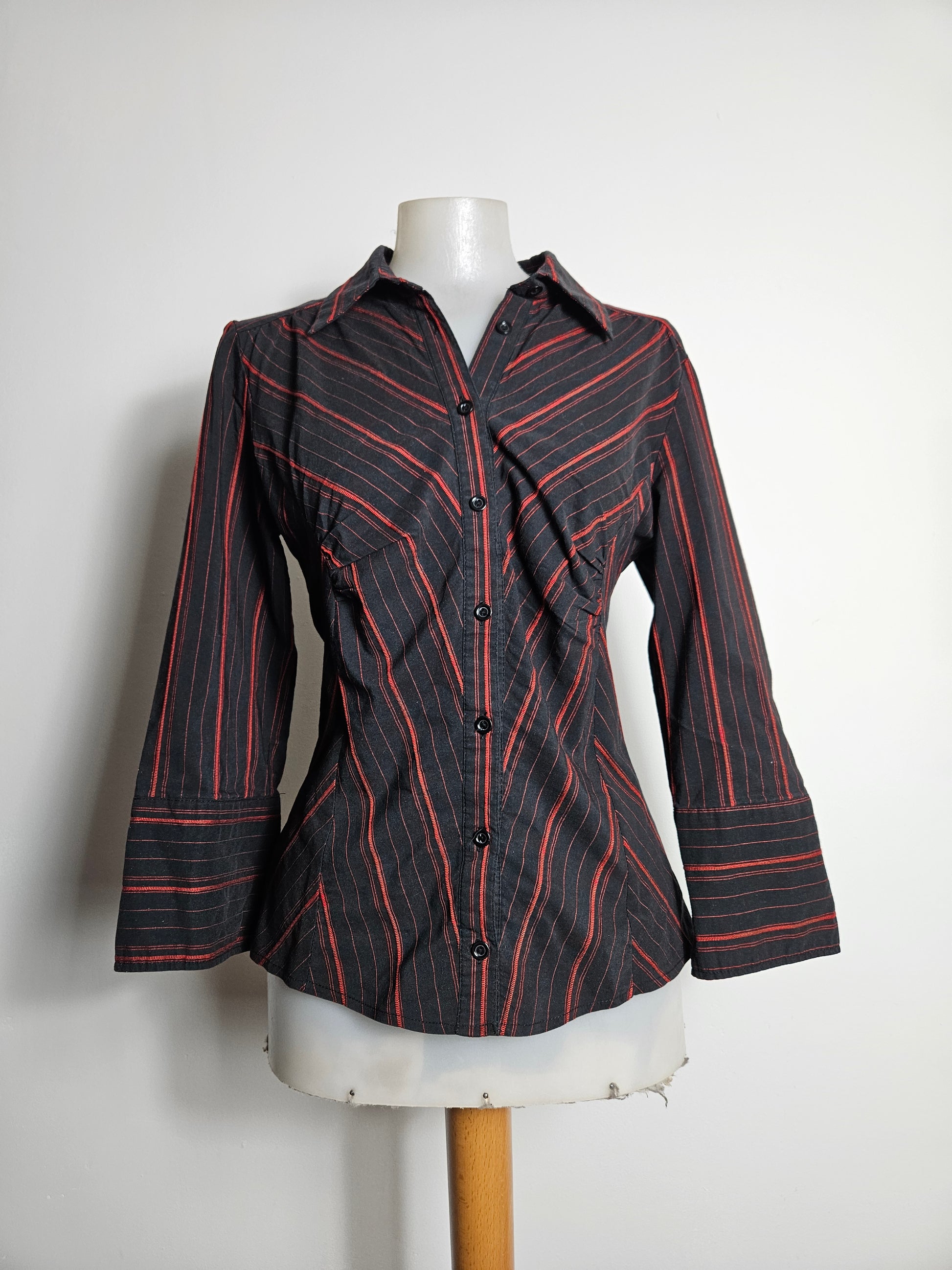 - Chemise cintrée noire à rayures rouges