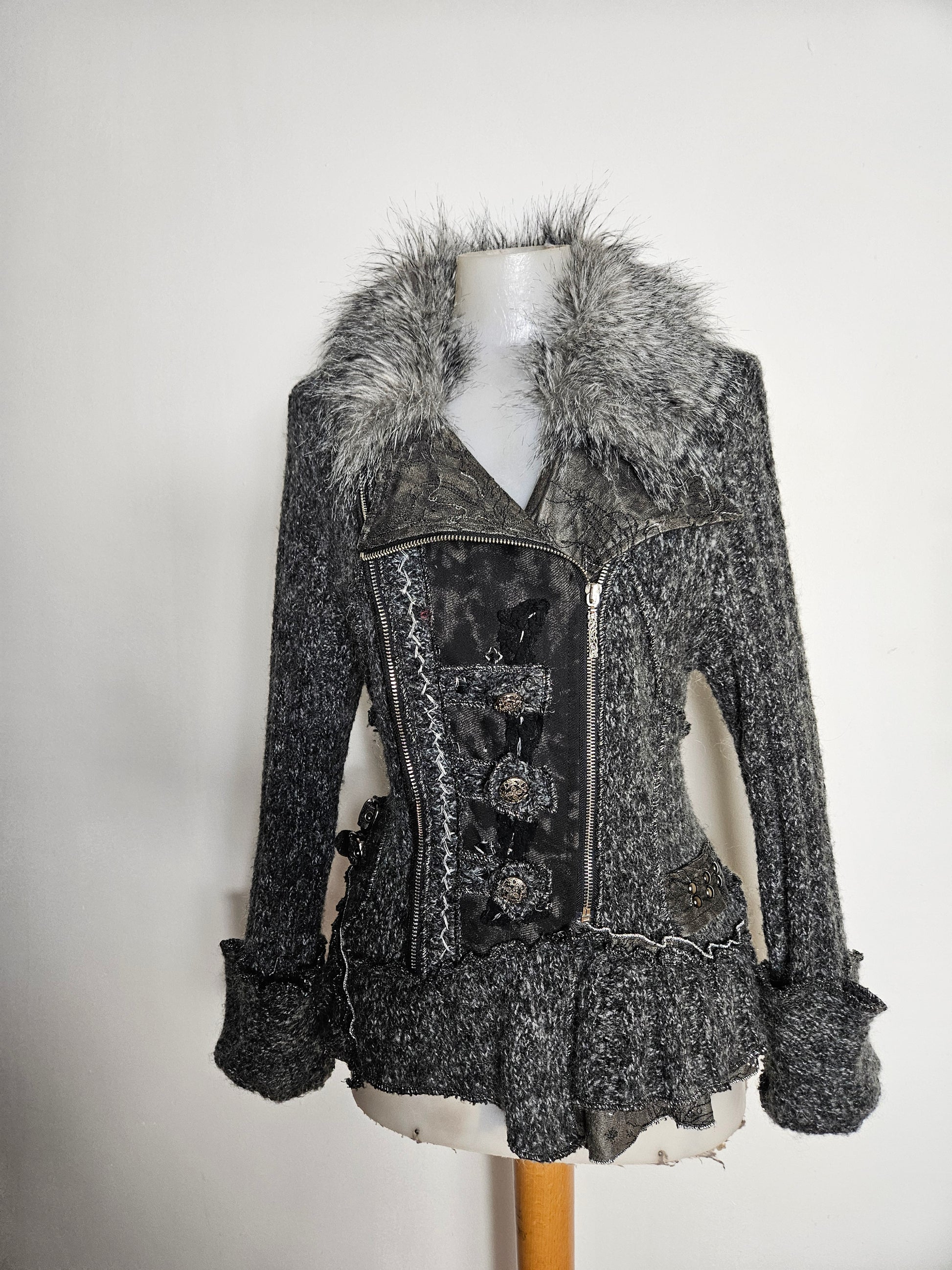 - Mélange de matières : maille, simili et fourrure synthétique