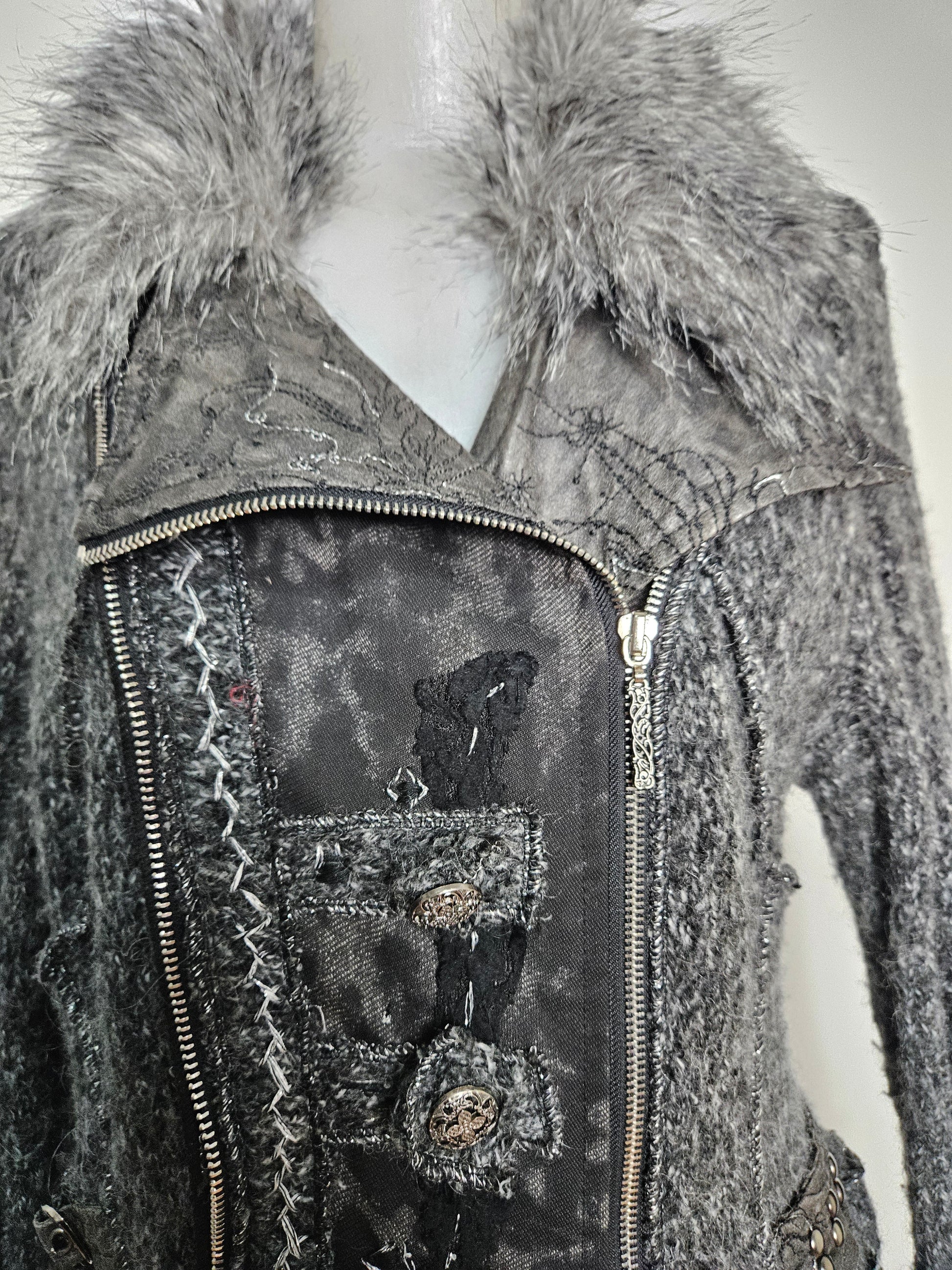 Veste gris chiné col fausse fourrure
